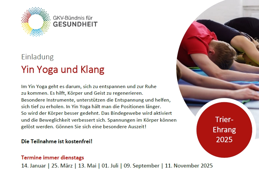 Im Yin Yoga geht es darum, sich zu entspannen und zur Ruhe zu kommen. Es hilft, Körper und Geist zu regenerieren. Besondere Instrumente, unterstützen die Entspannung und helfen, sich tief zu erholen. In Yin Yoga hält man die Positionen länger. So wird der Körper besser gedehnt. Das Bindegewebe wird aktiviert und die Beweglichkeit verbessert sich. Spannungen im Körper können gelöst werden. Gönnen Sie sich eine besondere Auszeit!