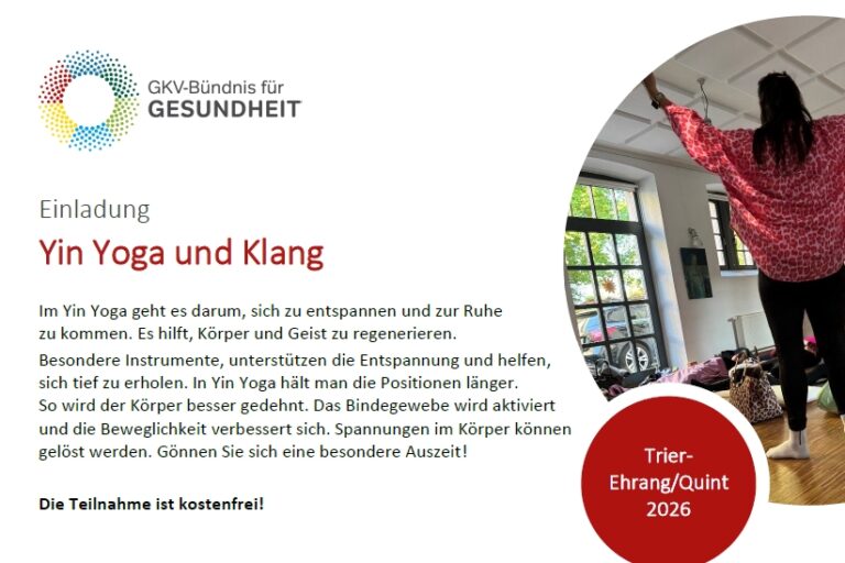 Veranstaltungsangebote vom GKV-Bündnis für Gesundheit JETZT IST EINE GUTE „ZEIT FÜR GESUNDHEIT“! Die Gesundheitsangebote gehen weiter. Auch Zuhause können wir viel für unsere Zufriedenheit und Gesundheit tun. Was zum Beispiel,…